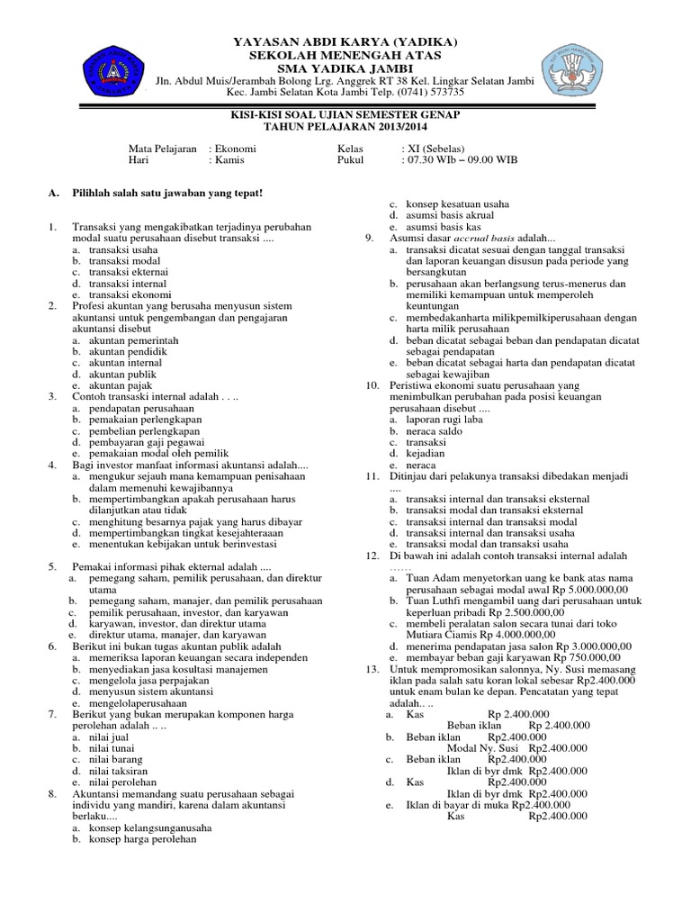 Lengkap 60 Contoh Soal Uts Ekonomi Kelas 11 Sma Ma Semester Ganjil Terbaru Bospedia