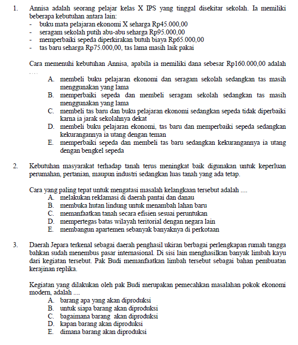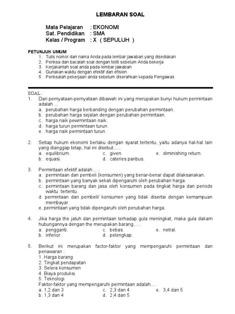 Naskah Soal Usbn Sma Mata Pelajaran Ekonomi Tahun Pelajaran 2017 2018 Ujian Mudah