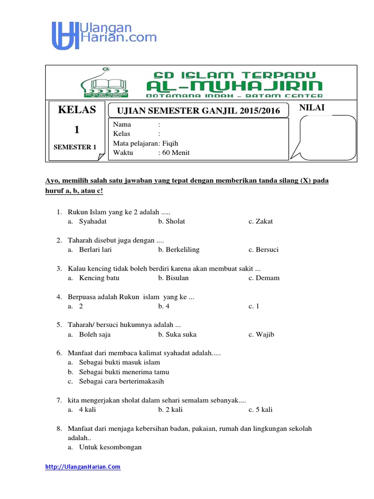 Soal Pts Uts Fiqih Kelas 2 Sd Mi Semester 1 Kurikulum 2013 Ruang Pendidikan