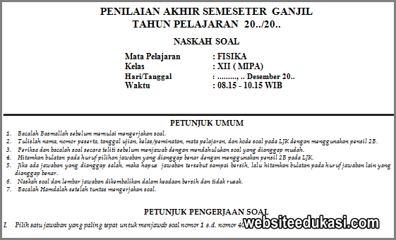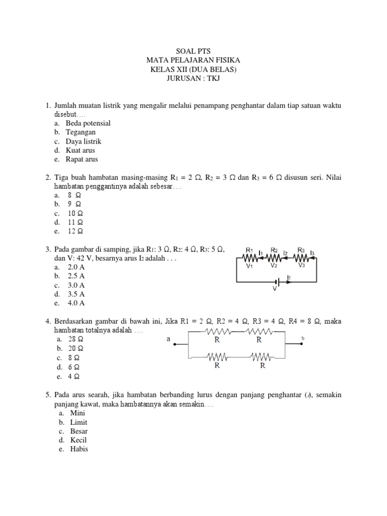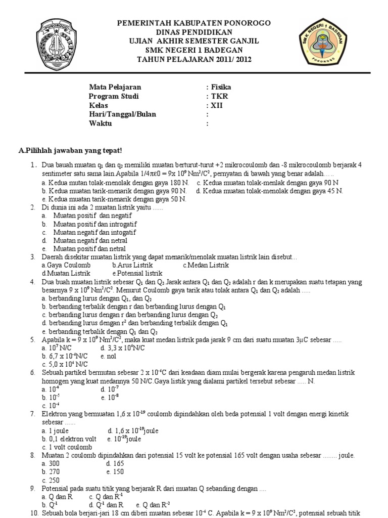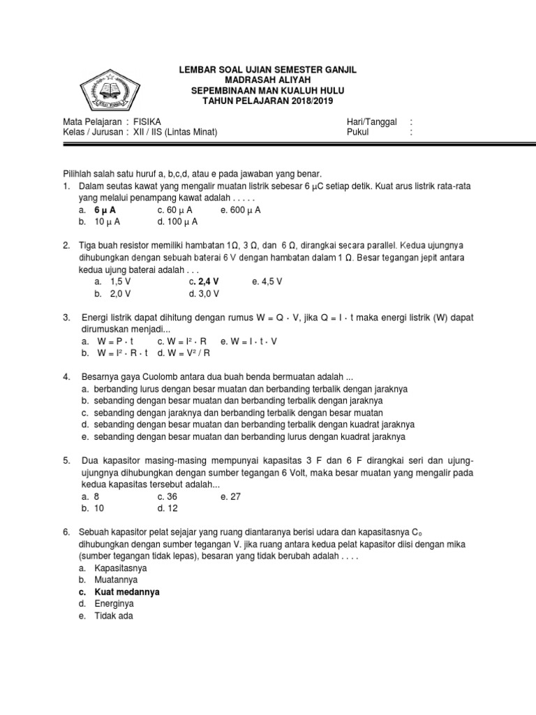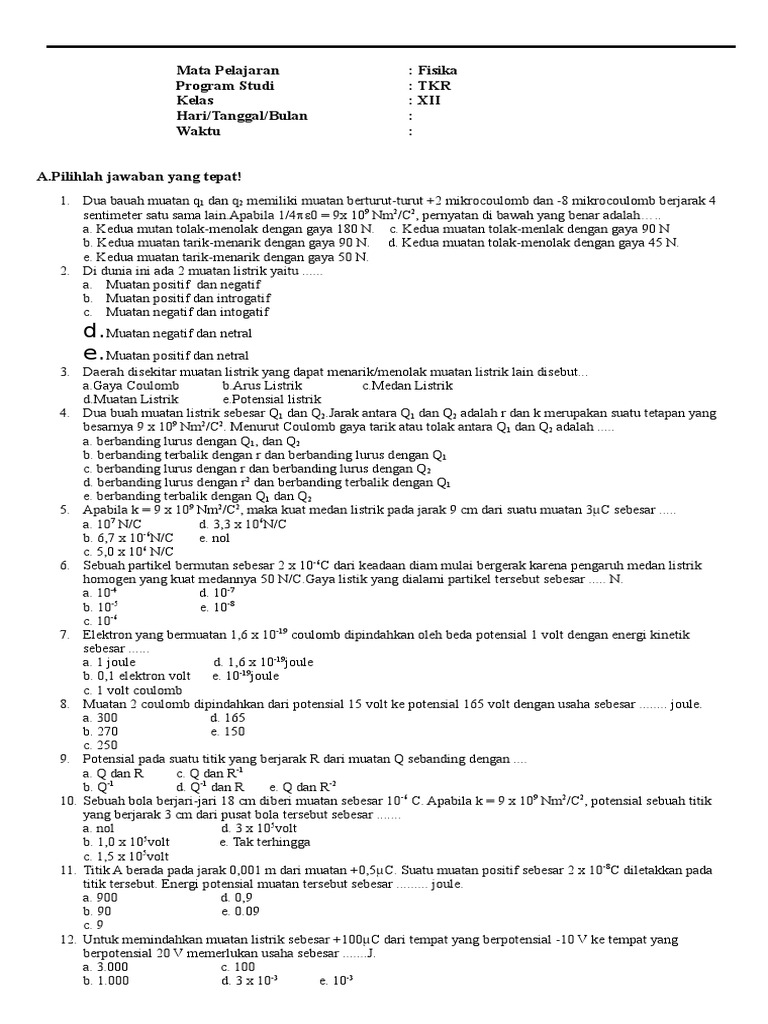 Latihan Soal Penilaian Tengah Semester 2019 Fisika Kelas Xii