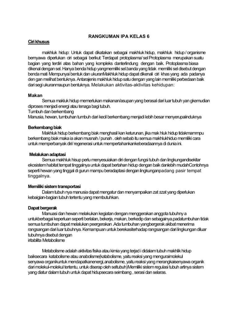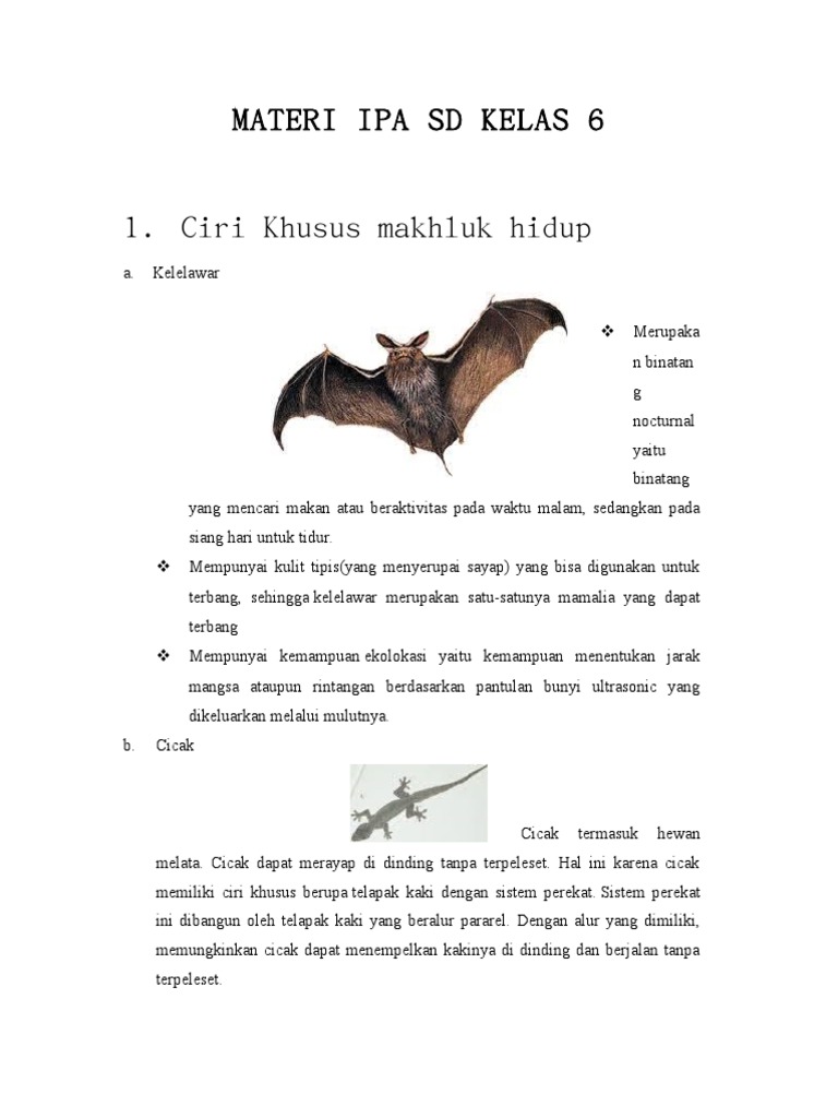 Ringkasan Materi Pelajaran Sd Ciri Khusus Mahluk Hidup Ipa Kelas 6 Sekolah Dasar