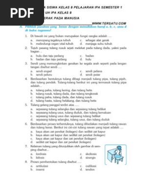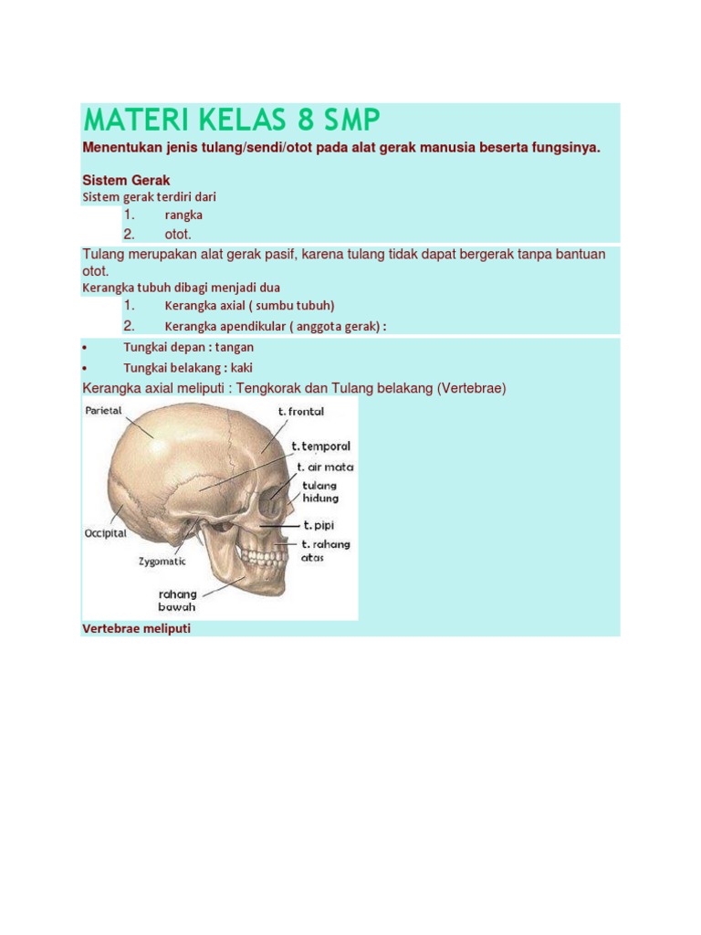 Smp Kelas 8 Biologi Bab 3 Sistem Gerak Pada Manusialatihan Soal Pdf Download Gratis