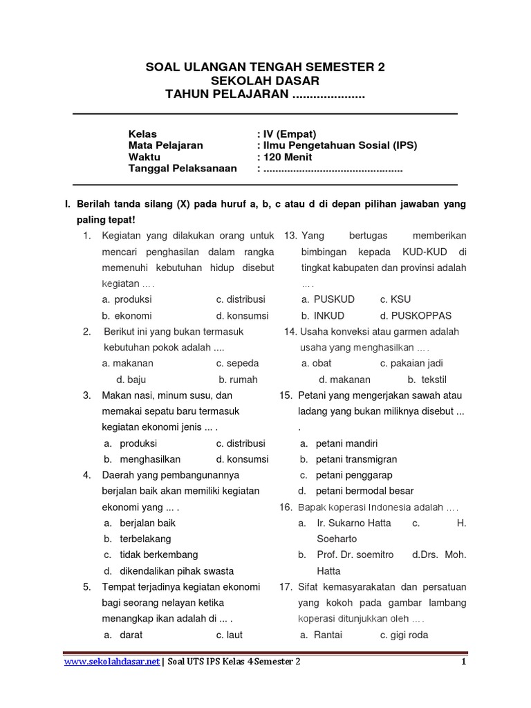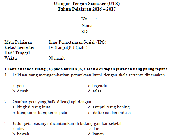 Download Soal Uts Ganjil Ujian Tengah Semester 1 Ips Kelas 4 Tahun 2017 2018 Artikel Materi 01