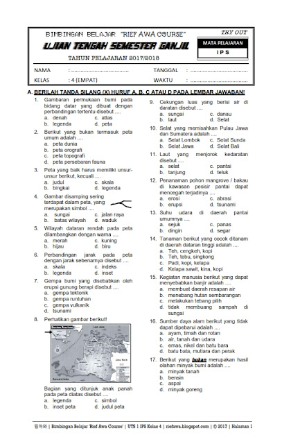 Berikut ini adalah rincian soal kelas 6 sdmi semua mata pelajaran semester. Sahabat edukasi yang berbahagia. Mata pelajaran ips disusun dari 15 soal pilihan ganda 5 soal isian singkat dan 3 soal uraian.