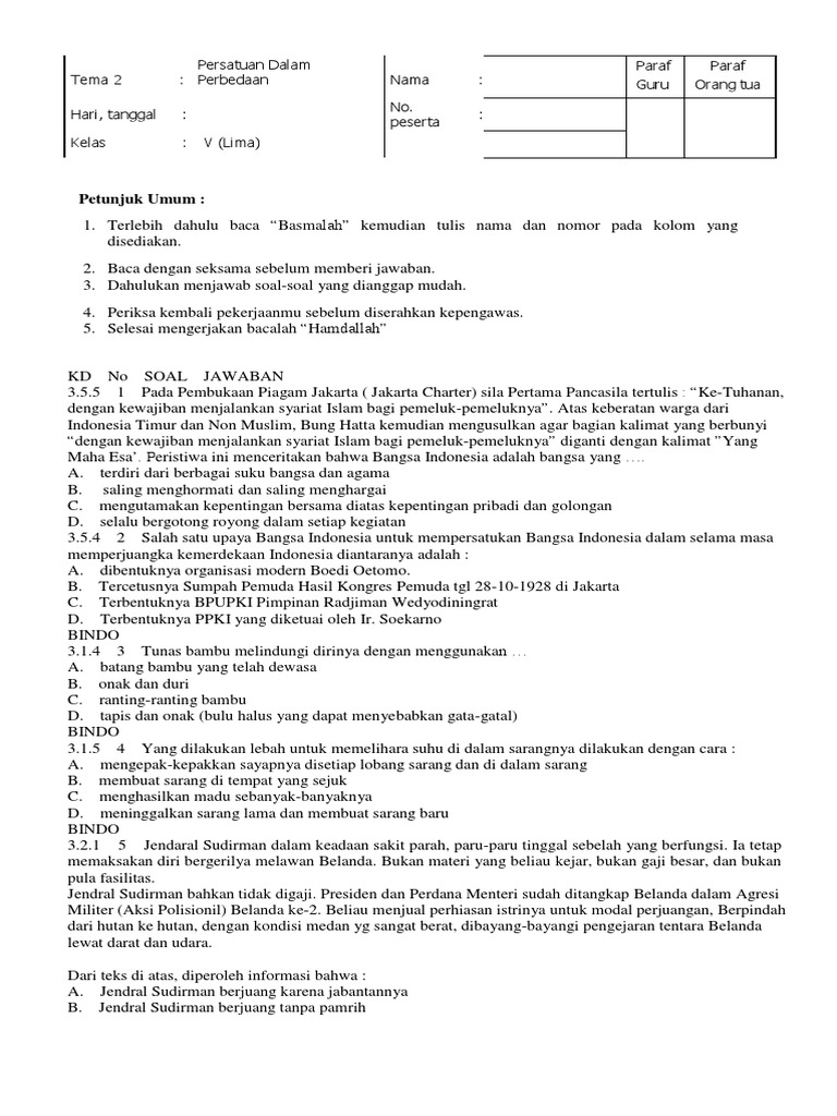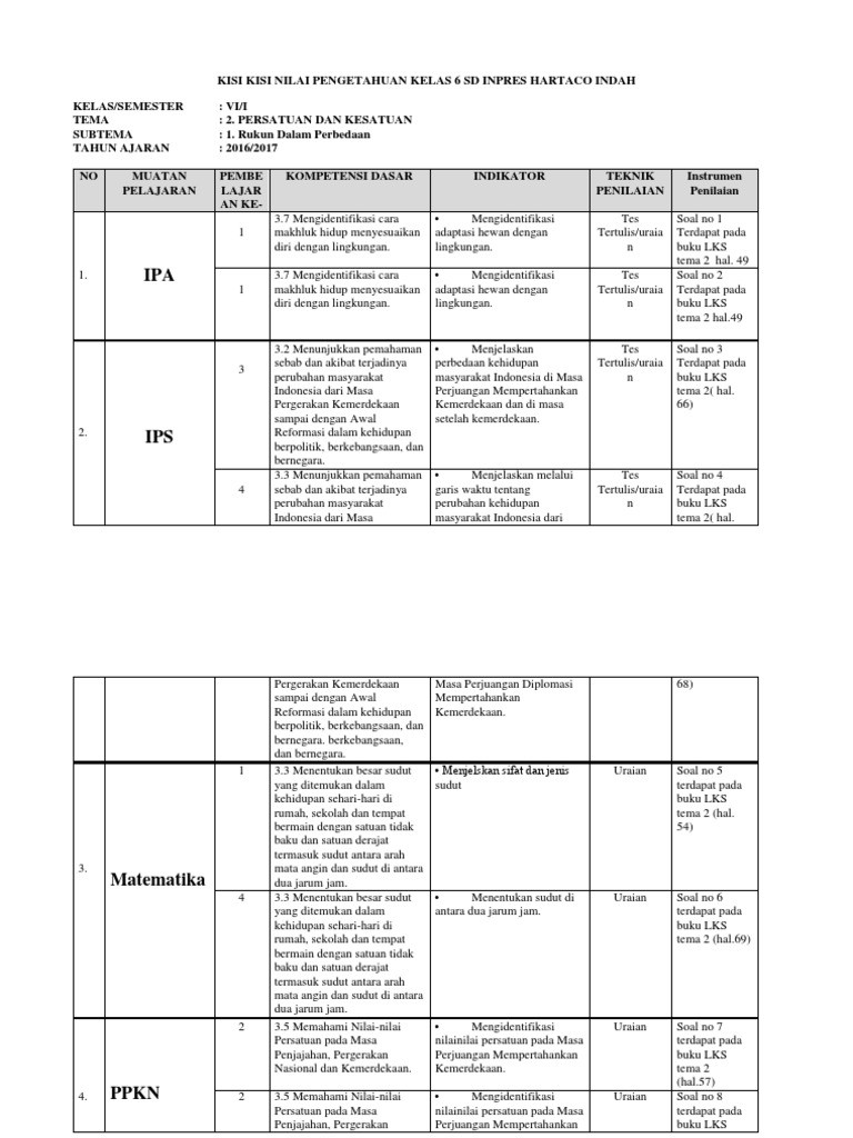 Soal Ulangan Harian Tema 1 Subtema 2 Kelas 6 Kurikulum 2013 Edisi Revisi 2018 Riyanpedia