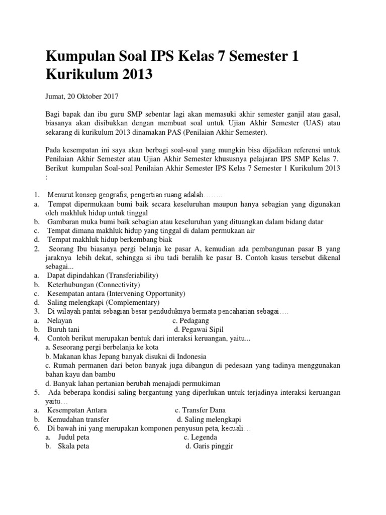 Kumpulan Soal Ips Kelas 7 Semester Ganjil Kurikulum 2013 Halaman 1 Kompasiana Com