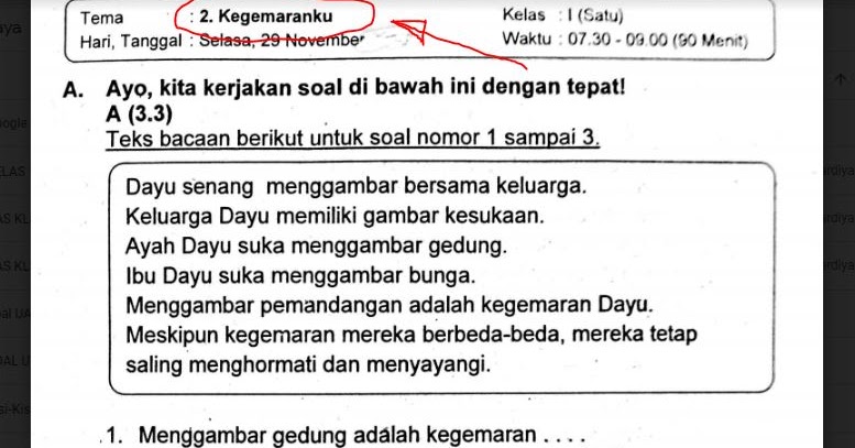 Soal Uts Tematik Kelas 1 Tema 2 Kegemaranku Semester 1 Contoh Soal Pelajaran Puisi Dan Pidato Populer