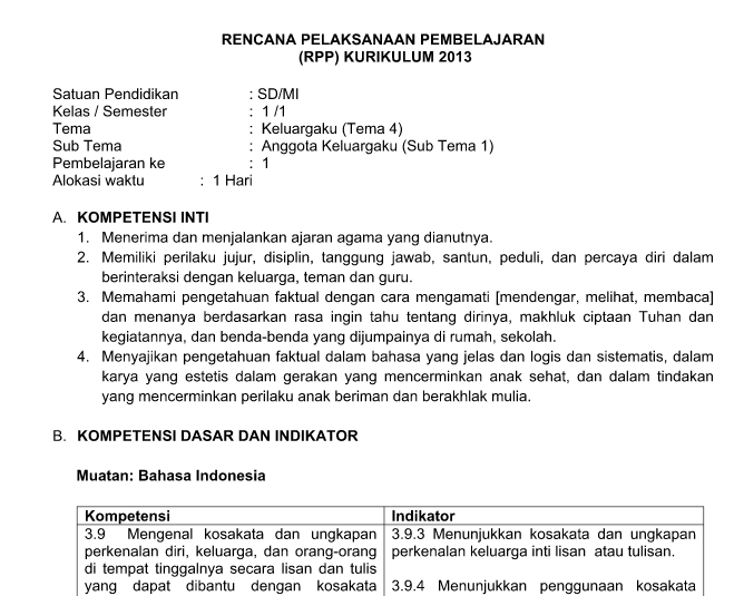 Rpp Kelas 1 Tema 1 Sub Tema 3 Pembelajaran 1 6 Rencana Pelaksanaan P Embelajaran Satuan Pendidikan Sekolah Dasar Kel Office Word Microsoft Microsoft Excel