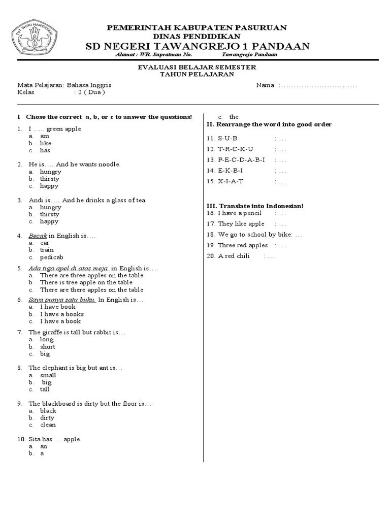 Contoh Soal Pts Kelas 2 Tema 5 Semester Genap Terbaru 2020 Info Pendidikan Terbaru