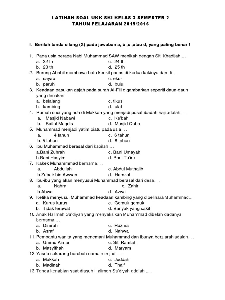 Contoh Soal Latihan Pat Ukk Uas Pai Dan Budi Pekerti Kelas 3 Semester 2 Sd Mi Sekolah Dasar Madrasah Ibtidaiyah Sudut Baca