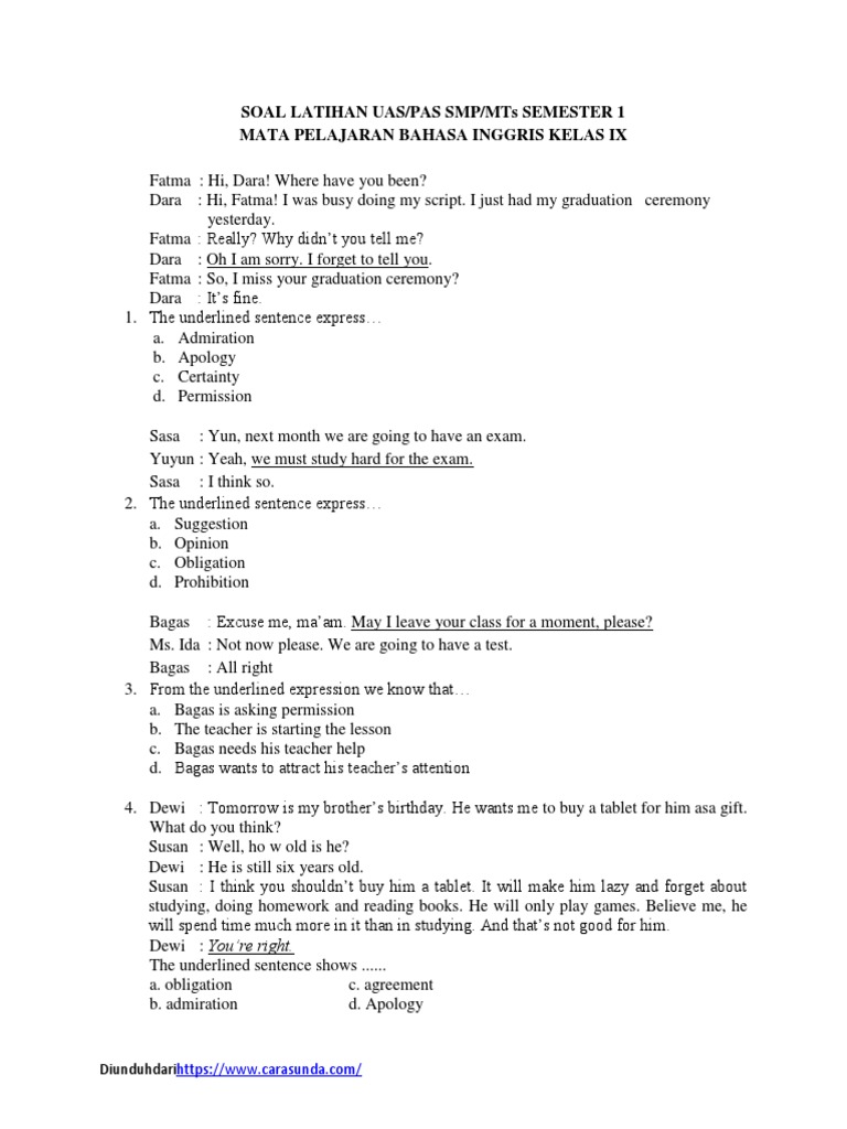 Inilah 40 Contoh Soal Untuk Dalam Pelajaran Bahasa Inggris Semester 1 Bagi Kelas 7 Smp Andi Esty Rizky Yunida Academia Edu