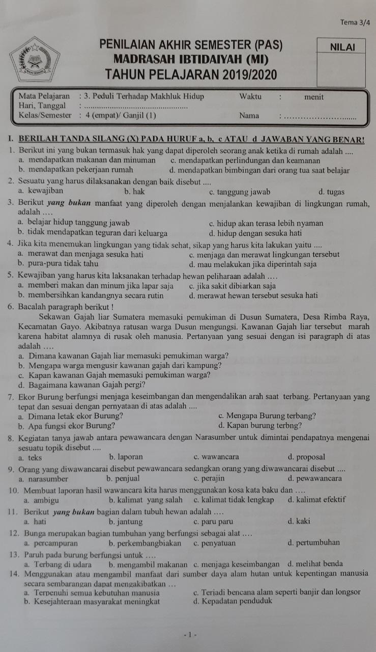 Modul Bdr Kelas 4 Sd Mi Tema 3 Peduli Terhadap Makhluk Hidup Kurikulum 2013 Ruang Pendidikan