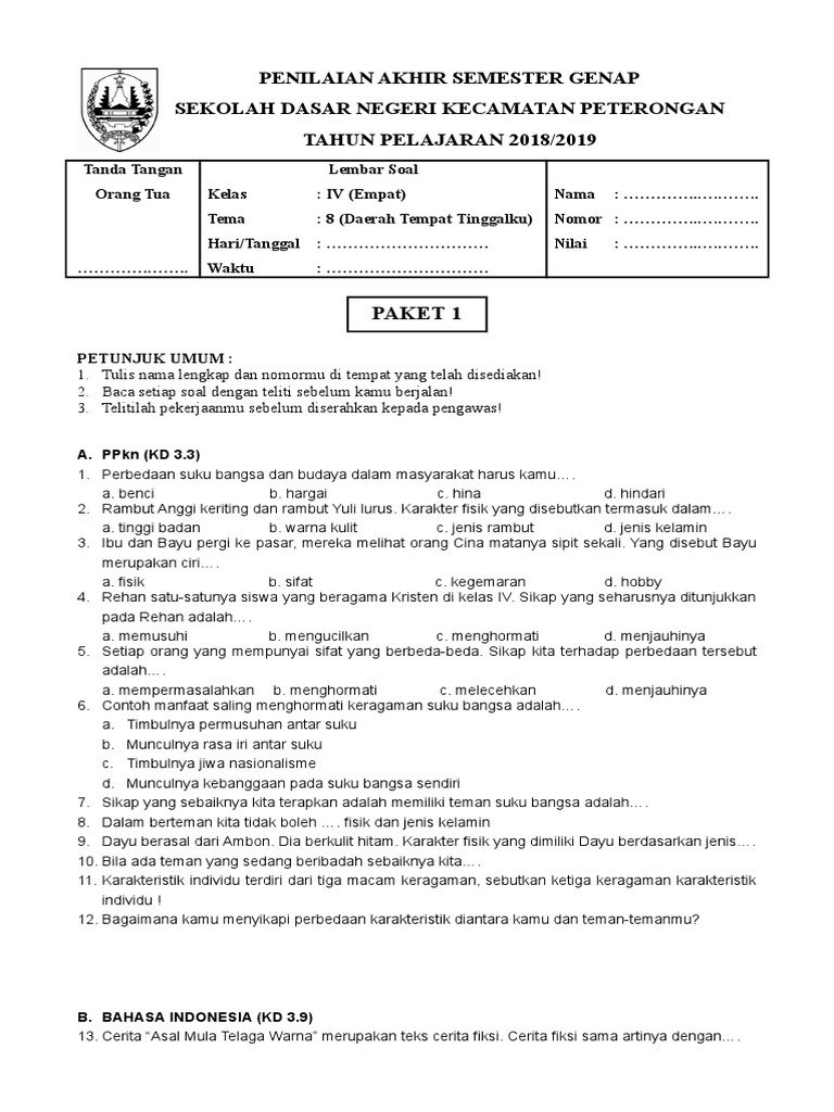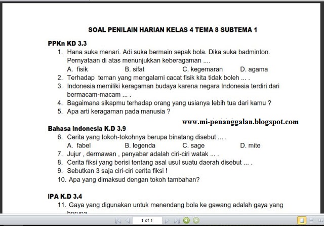 Soal Ulangan Harian Dan Jawaban Kelas 4 Tema 8 Sub Tema 3 K13 Revisi Terbaru Bag 1 Penilaian Matematika Kelas 5 Pendidikan