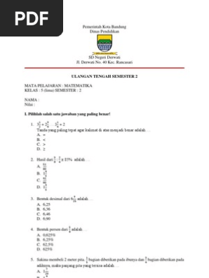 Download Soal Dan Kunci Jawaban Pts Uts Matematika Kelas 5 Semester 2 Sd Mi Kurikulum 2013 Sdn Sobang 2