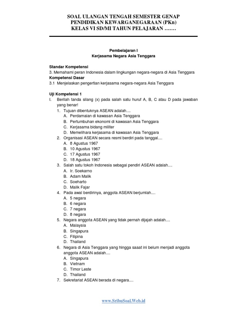 Kumpulan Soal Sd Soal Pkn Kelas 6 Sd Ukk Semester 2 Ta 2013 2014