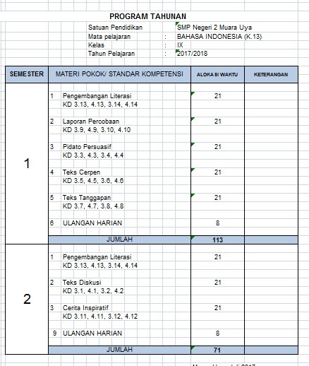 Program Tahunan Dan Program Semester 1 Kelas 9 Kurikulum 2013 Pelajaran Bahasa Indonesia Di Jari Kamu