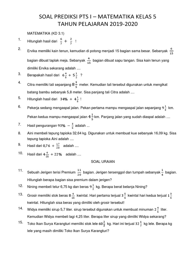 Latihan Soal Matematika Mata Pelajaran Kelas Matematika 6 Enam Hari Tanggal Waktu I Berilah Ta Microsoft Office Word Office Word Math Number Sense