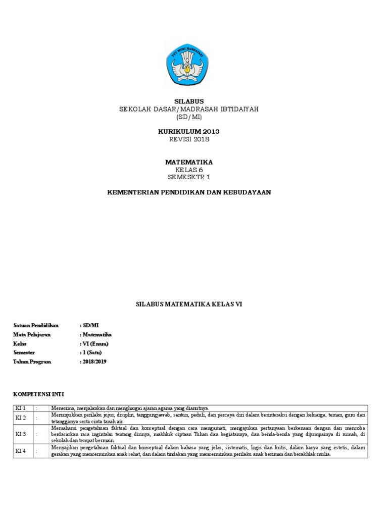 Ki Dan Kd Matematika Kelas 6 Sd Mi Kurikulum 2013 Semester 1 2 Revisi Terbaru 2018 Tahun Pelajaran 2019 2020 Idn Paperplane