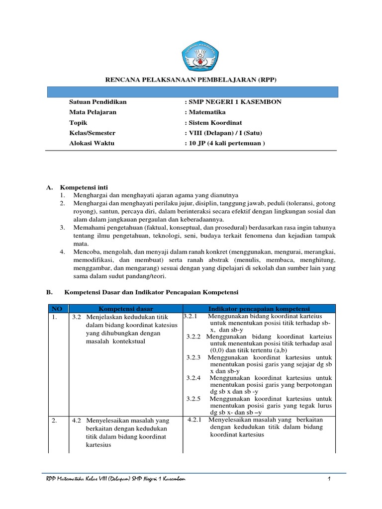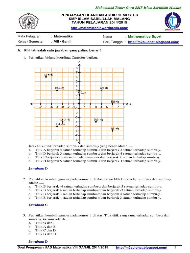 Coretan Pengabdian Anak Negeri Soal Ulangan Harian Mtk Kelas 8 Tentang Koordinat Cartesius Kurikulum 2013