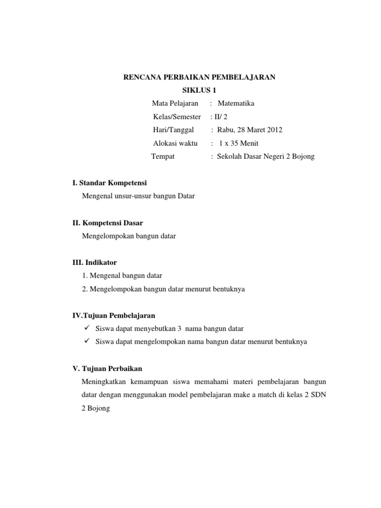 Contoh Ptk Sd Mata Pelajaran Matematika Kelas 2 Terbaru Format Doc Idn Paperplane