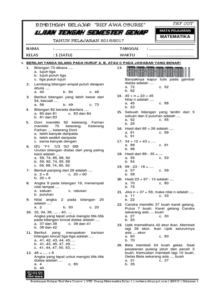Latihan Soal Matematika Mata Pelajaran Kelas Matematika 6 Enam Hari Tanggal Waktu I Berilah Ta In 2020 Math Number Sense Microsoft Office Word Office Word