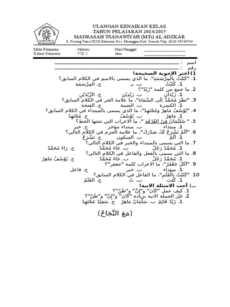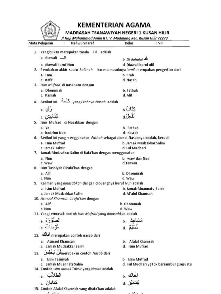 Soal Semester Genap 2015 Nahwu Shorof Kelas 8