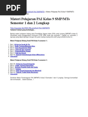Silabus Pai Smp Mts Kelas 9 Semester Ganjil Kurikulum 2013 Tahun Pelajaran 2020 2021 Didno76 Com