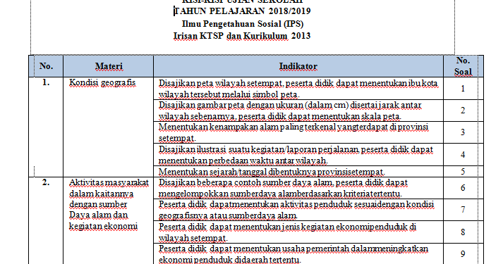 Kisi Kisi Soal Ips Ppkn Pjok Dan Sbdp Ujian Sekolah Tahun 2018 2019 Guru Berbagi