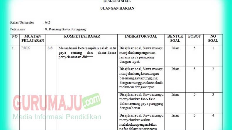 Kisi Kisi Soal Ph Uh Pjok Kelas 6 K13 Revisi 2018 Guru Maju