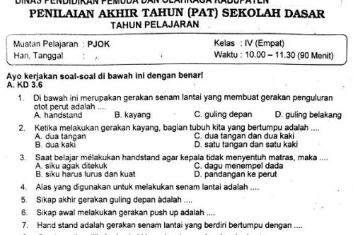 Latihan Soal Uas Pas Pjok Kelas 6 Sd Kurikulum 2013 Semester 1 Dan Kunci Jawaban Youtube