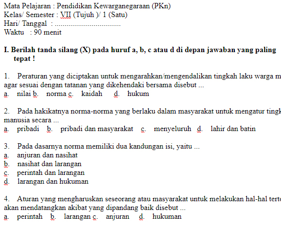 Soal Pkn Kelas 3 Sd Bab 2 Aturan Dan Norma Dalam Masyarakat Dan Kunci Jawaban Bimbel Brilian