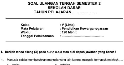 Soal Latihan Uts Pkn Kelas 4 Sd Mi Semester 2 Sekolahdasar Net