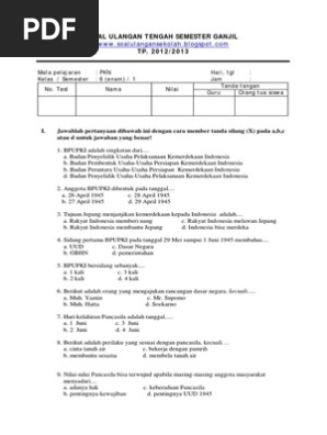 Soal Pkn Kelas 6 Sd Bab 1 Proses Perumusan Pancasila Sebagai Dasar Negara Dan Kunci Jawaban Bimbel Brilian
