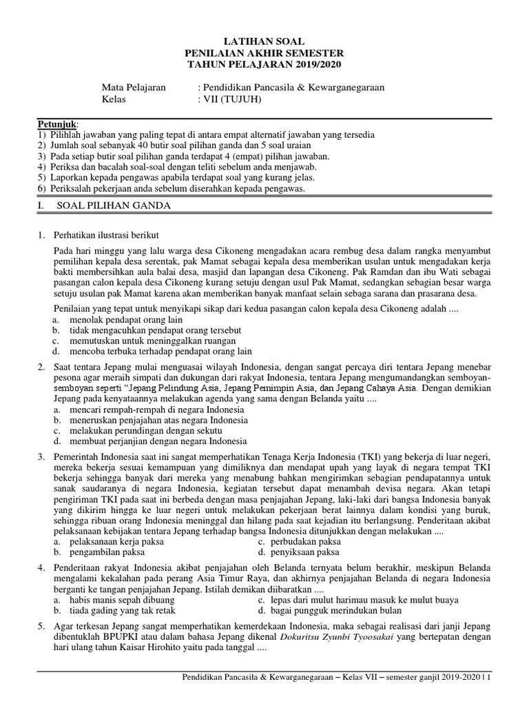 Lengkap Kumpulan Soal Uts Uas Ukk Pkn Kelas 7 8 9 Smp Mts Terbaru Dan Terupdate Bospedia