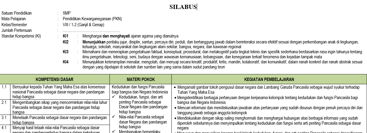 Silabus Pkn Smp Mts Kelas 8 Semester Ganjil Kurikulum 2013 Tahun Pelajaran 2020 2021 Didno76 Com