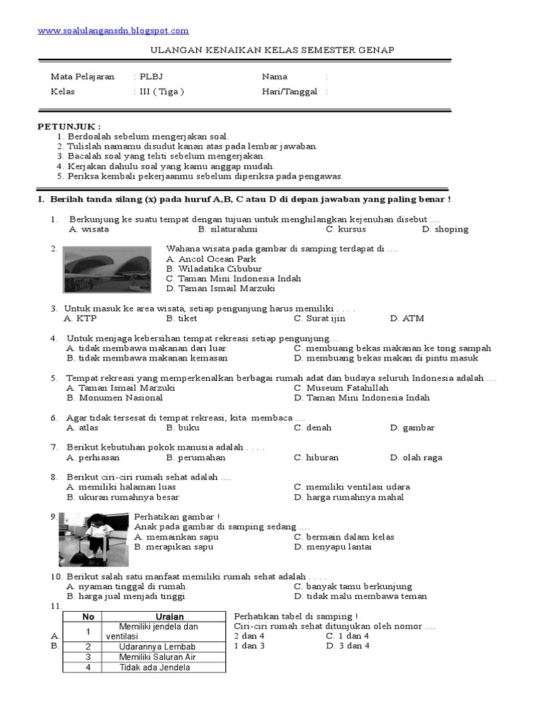 Soal Jawaban Plbj Kelas 3 Semester 1 Mari Belajar Belajar Dimana Saja Dan Kapan Saja