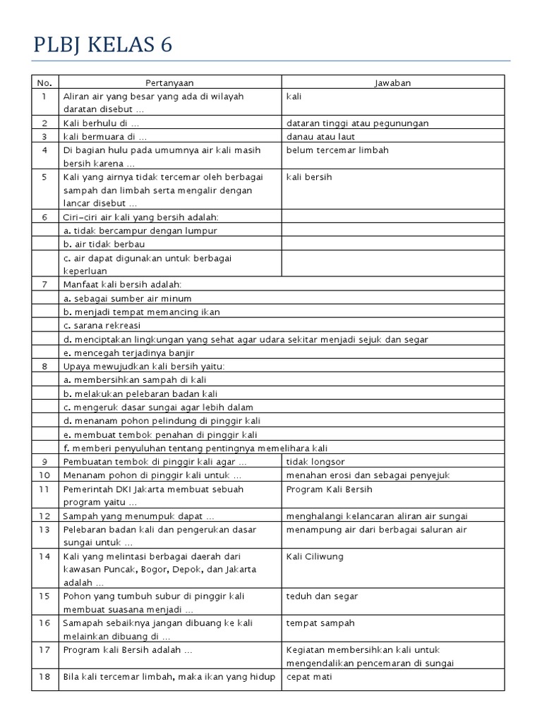 Soal Uts Plbj Kelas 6 Semester 1 Ktsp Kumpulan Soal Ulangan Sekolah Dasar