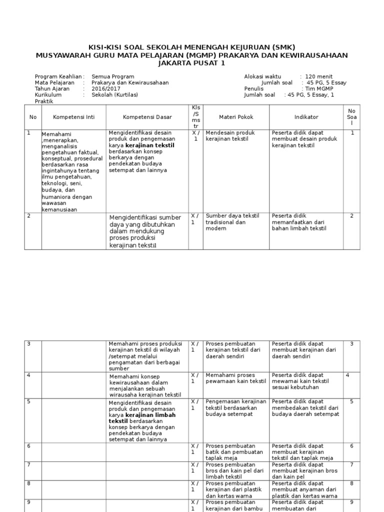 Web Viewsoal Pilihan Ganda Tahun Pelajaran 2016 2017 Penulis Tim Penulis Kurikulum Sekolah Kurtilas Jumlah Soal 50 No Kompetensi Inti Kompetensi Dasar Docx Document