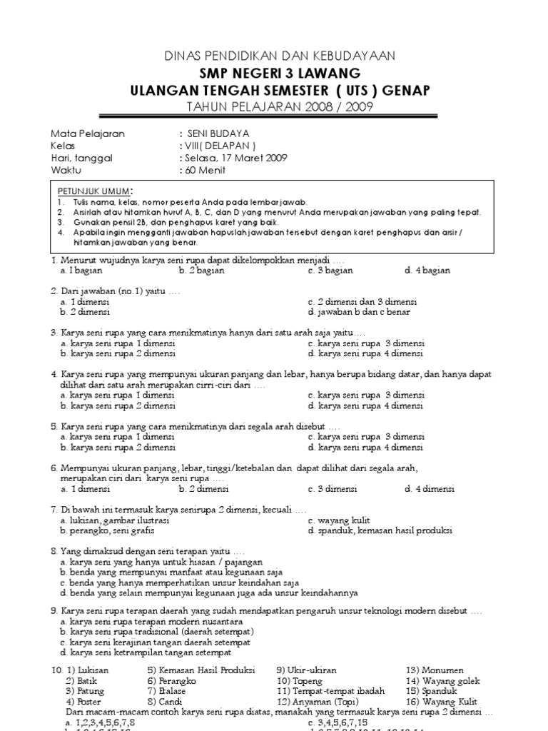 Materi Seni Budaya Kelas 8 Semester 2 Tingkat Smp Mts Kurikulum 2013 Revisi 2018 Tahun Pelajaran 2019 2020 Ruang Guru