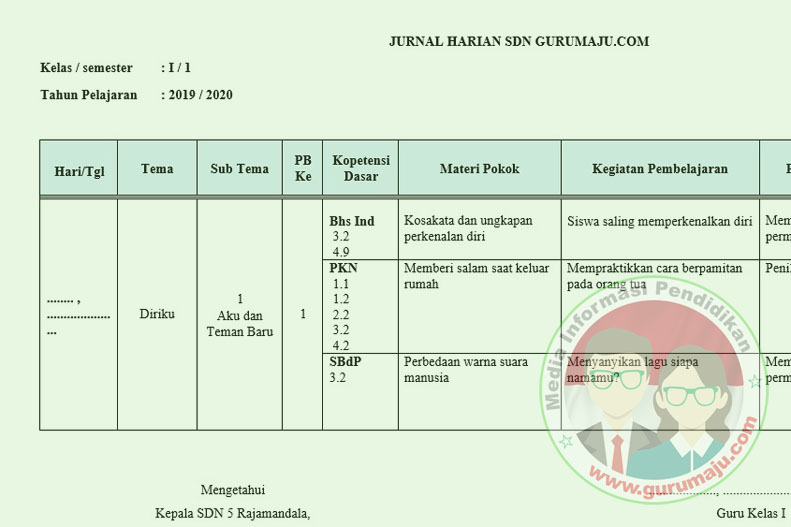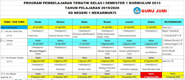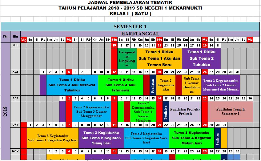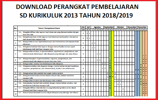 Jadwal Pelajaran Kurikulum 2013 Sd Lengkap Kelas 1 2 3 4 5 6 Tahun Pelajaran 2019 2020 Infoshare13