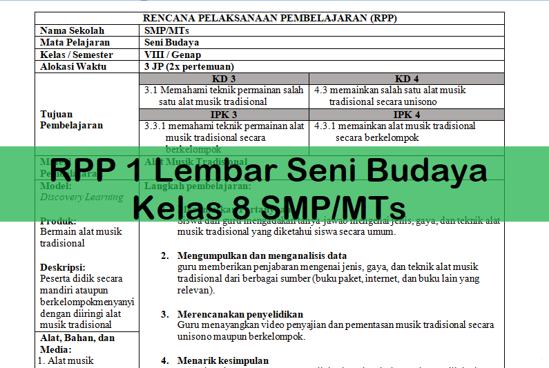 Cd Rpp Kelas 8 Viii Mapel Seni Budaya Kurikulum 2013 Kurtilas K13 Revisi Terbaru 2017 Untuk Smp Mts Di Lapak Rizki Store Bukalapak