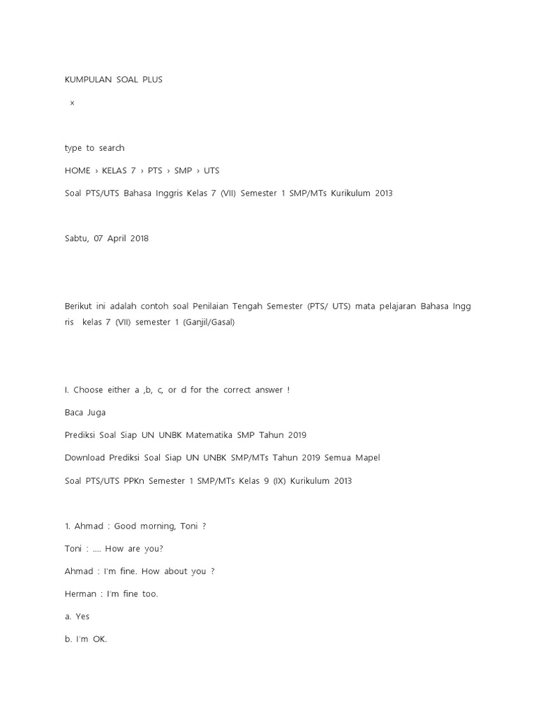 Latihan Soal Uts Pts Bahasa Inggris Kelas 7 Semester 1 Ganjil Pendidikan Kewarganegaraan Pendidikan Kewarganegaraan