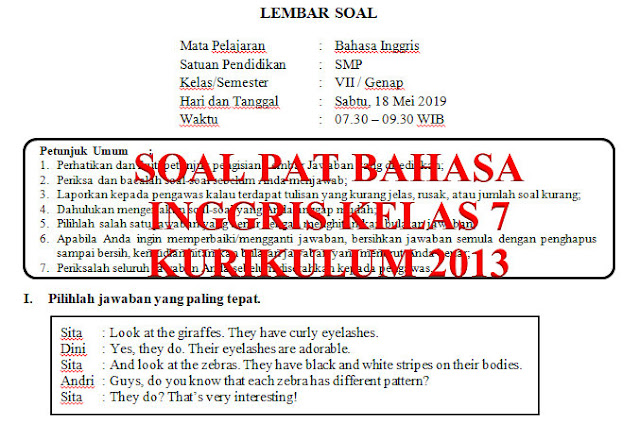 Soal Dan Kunci Jawaban Pat Bahasa Inggris Smp Kelas 7 Kurikulum 2013 Tahun Pelajaran 2018 2019 Didno76 Com