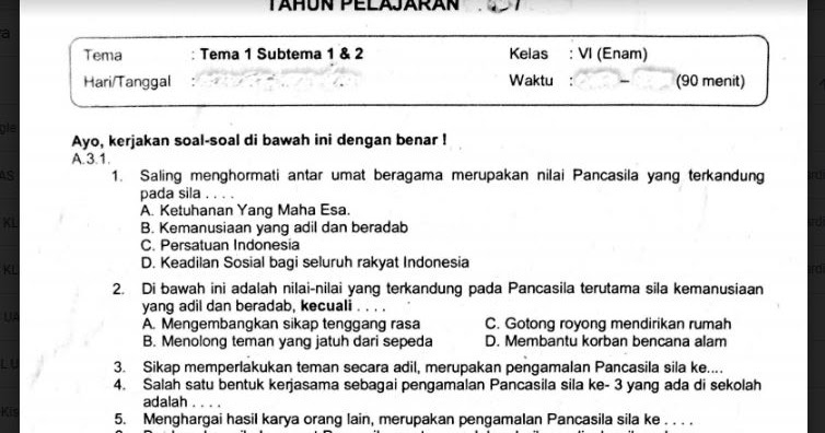 Kunci Jawaban Buku Tema 1 Kelas 5 Sub Tema 2 Pembelajaran 1 Contoh Rpp Sd Dan Soal Sd