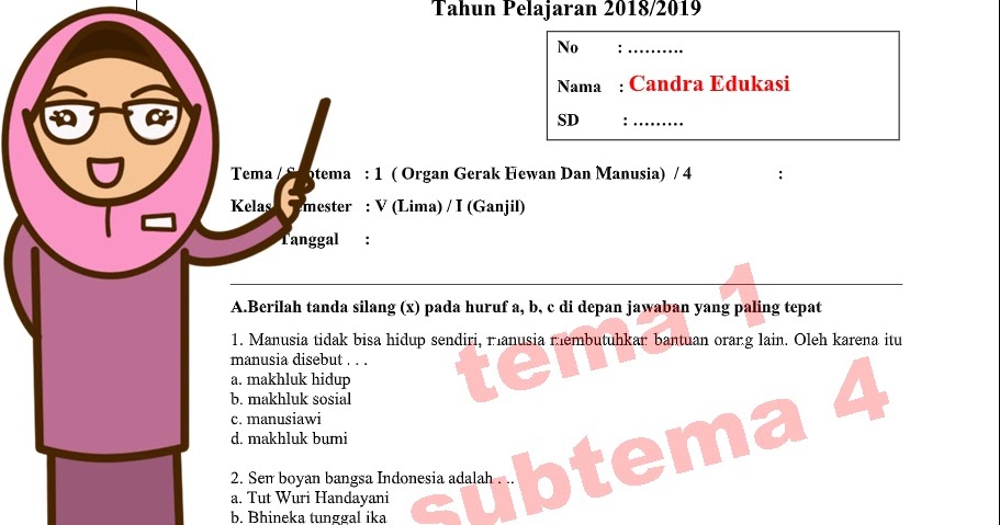 Download Soal Tematik Kelas 5 Semester 1 Tema 1 Subtema 3 Organ Gerak Hewan Dan Manusia Lingkungan Dan Manfaa Matematika Kelas 5 Pendidikan Dasar Kurikulum
