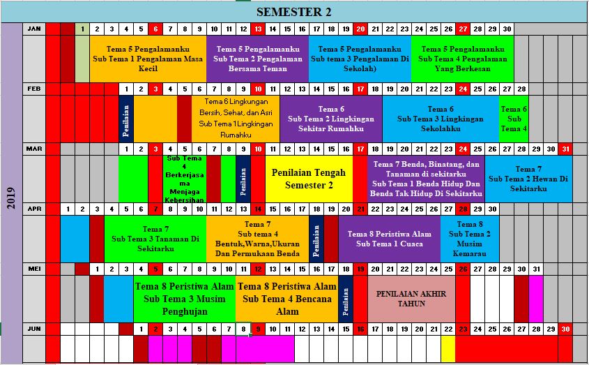 Download Jadwal Pelajaran Tematik Kurikulum 2013 Tahun Pelajaran 2019 2020 Kelas 5 Lima Sd Mi Semester 1 Dan 2 Guru Jumi