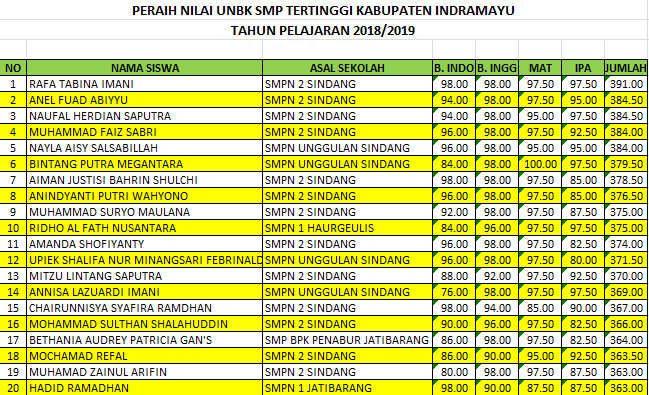 20 Siswa Dengan Nilai Unbk Smp Tertinggi Se Kabupaten Indramayu Tahun 2019 Mgmp Ips Indramayu