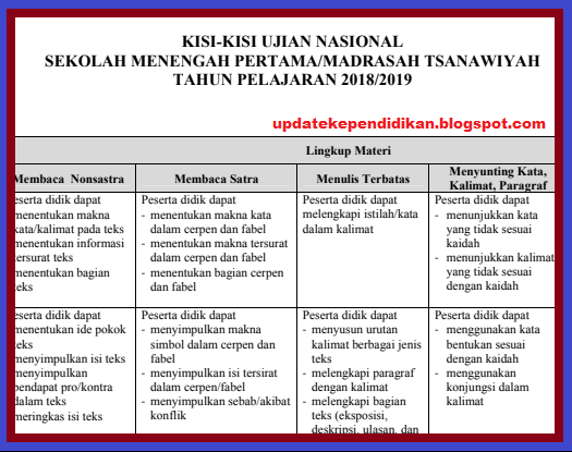 Mekanisme ujian sekolah berstandar nasional usbn tahun 2019. Kisi kisi disusun berdasarkan kriteria pencapaian standar kompetensi lulusan standar isi dan kurikulum yang berlaku. Ujian nasional berbasis komputer unbk dan ujian nasional berbasis kertas pensil unkp.