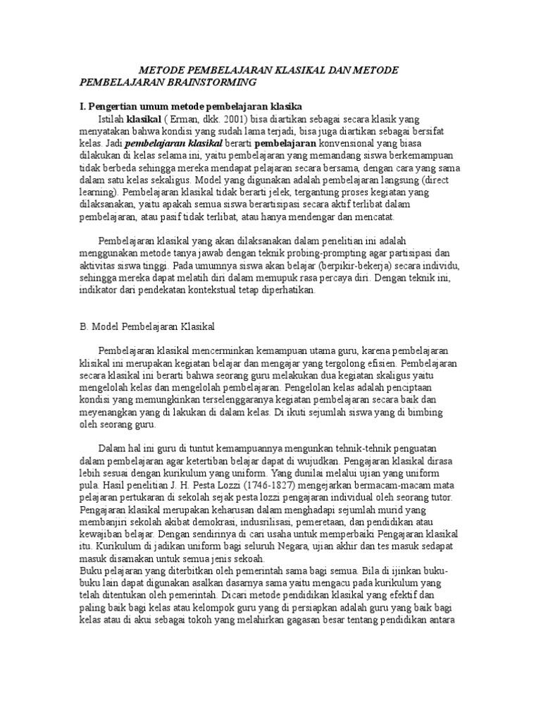 Perbedaan Pendekatan Pembelajaran Klasikal Dan Publikasi Pdfآ Memiliki Agenda Kegiatan Yang Jelas Pdf Document