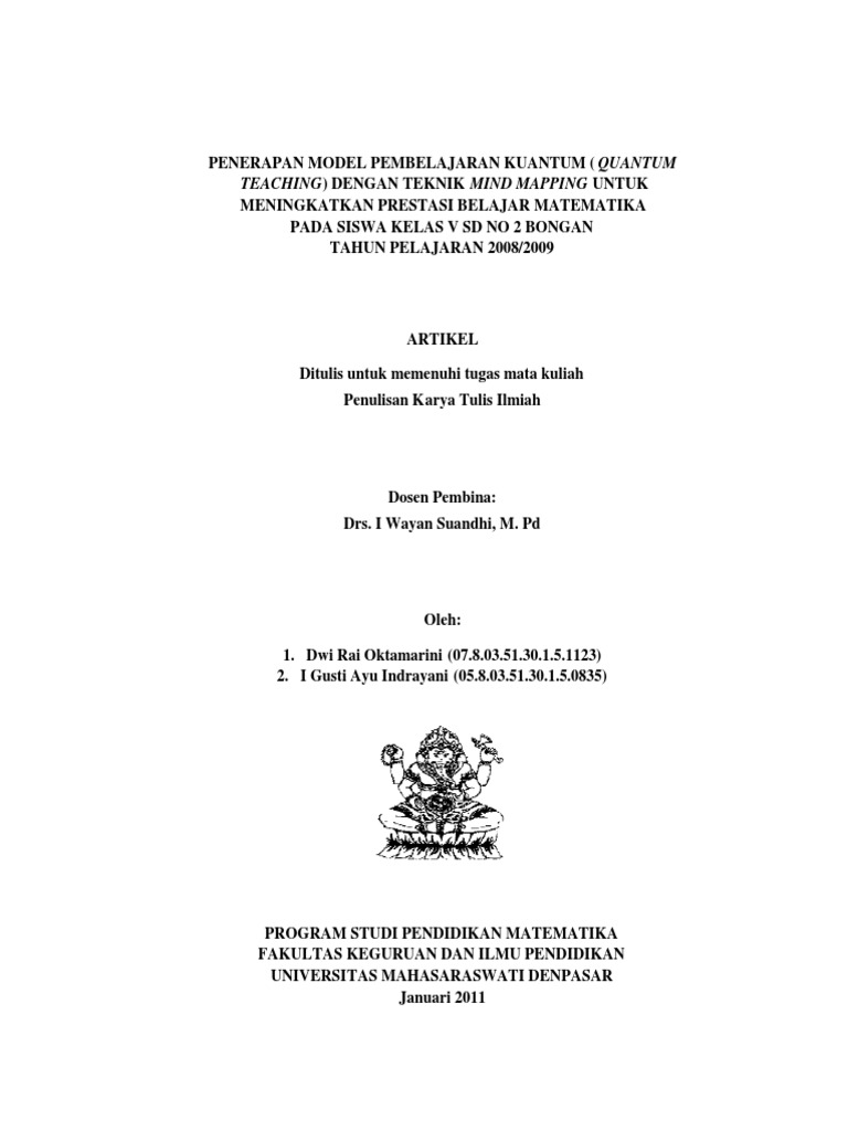 Pdf Pengaruh Pembelajaran Kuantum Quantum Learning Dan Peta Pikiran Mind Mapping Terhadap Keterampilan Berpikir Kreatif Dan Hasil Belajar Biologi Siswa Sma Laricky Manda Academia Edu
